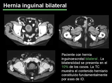La cirugía se realizó 45 días después de la aplicación de la TBA, tras la reducción del contenido del saco herniario derecho (que contenía asas adheridas de intestino delgado, ciego, apéndice, epiplón y colon ascendente). Se redujo el saco herniario izquierdo (que contenía múltiples adherencias, intestino delgado, epiplón y un segmento de colon descendente). El paciente fue dado de alta hospitalaria a las 24h del posquirúrgico, sin complicaciones. A los 7 días se retiraron puntos y drenajes y, a los 46 meses de seguimiento, su evolución es satisfactoria y sin evidencia de recidiva herniaria.