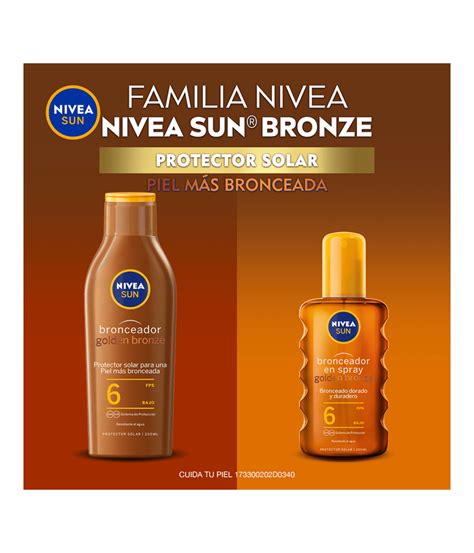 - Nivea Protección solar Aceite Bronceador SPF 6: Un aceite bronceador que, además de proporcionar un tono dorado, protege la piel de los rayos solares.