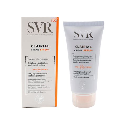 Con protección solar SPF50+, proporciona una barrera contra los dañinos rayos UVB, UVA, luz visible e infrarrojos. Además de sus beneficios inmediatos para la piel, Clairial Crema SPF50+ también demuestra su compromiso con el medio ambiente. SVR Clairial Crema SPF50+ es más que un simple producto de belleza; es una solución total para quienes buscan mejorar el aspecto de su piel al tiempo que la protegen de futuros daños.
