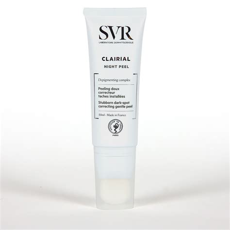 SVR Clairial Night Peel es un peeling suave diseñado para reducir las manchas instaladas, las manchas marrones debidas al envejecimiento, la postinflamación y la postexposición al sol. Este producto innovador corrige todo tipo de manchas de pigmentación, tanto recientes como instaladas, gracias a sus enzimas vegetales que ayudan a restaurar la uniformidad y luminosidad de la piel.