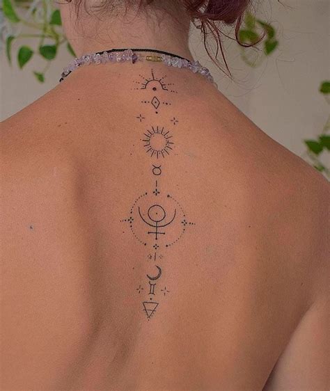 Estos tatuajes astrales son especialmente atractivos por su elegancia y simplicidad, utilizando líneas continuas que, al ser en su mayoría rectas y sin relleno, suelen doler menos al tatuar.
