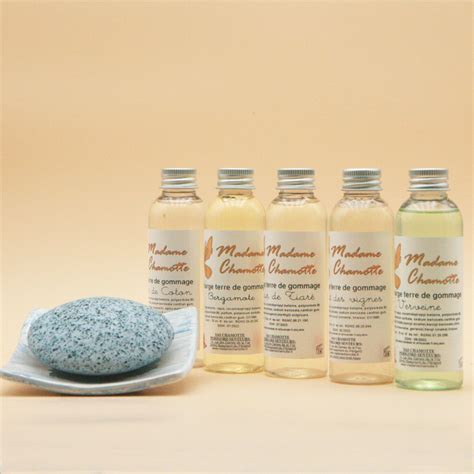 Madame Chamotte le invita a descubrir nuestra gama de cuidados, de exfoliaciones, de leches para el cuerpo y el rostro, nuestra gama de productos de higiene corporal así como nuestros aceites perfumados. Nuestros productos le permitirán cuidar su piel con suavidad, hidratarla, suavizarla, nutrirla y perfumarla.