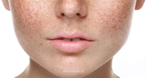 También pueden aparecer agrupadas en las mejillas y la nariz, pero no suelen hacerlo en las áreas de la piel cubiertas o en las mucosas. Son manchas planas bien delimitadas, de color habitualmente uniforme y siempre de un tono más oscuro que la piel que la rodea. Suelen ser de pequeño tamaño, ya que, normalmente, miden entre tres y cinco milímetros de diámetro.
