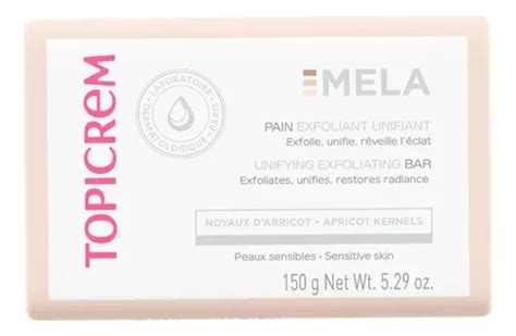 Topicrem MELA Unifying Exfoliating Bar es un limpiador sólido diseñado para reducir las manchas oscuras, unificar la textura de la piel y devolverle su luminosidad. Gracias a sus gránulos exfoliantes de semillas de albaricoque, es adecuado para pieles sensibles. La fórmula, enriquecida con glicerina y aceite de oliva, asegura una limpieza no agresiva, dejando la piel uniforme y luminosa. Su fragancia floral y polvorienta, junto con su espuma cremosa, proporciona una experiencia sensorial placentera.