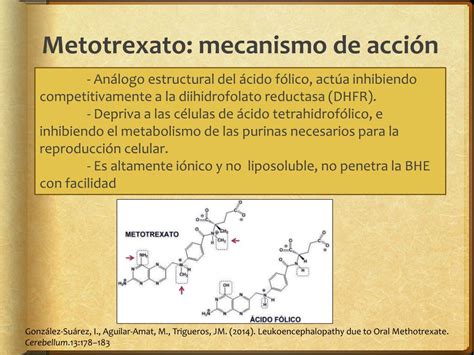 El metotrexato es un análogo de los folatos. Compite con el ácido folínico y con el folato sérico para penetrar en la célula. Una vez en el interior, la enzima folato-poliglutamasa sintasa transforma al metotrexato en poliglutamatos, metabolitos de larga vida media, causantes de su actividad antifolato y de sus efectos citotóxicos.