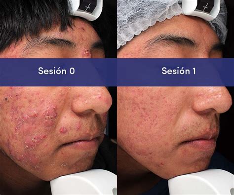 Además, trata y mejora las cicatrices, ya que la radiofrecuencia estimula la producción de nuevo colágeno. A pesar de realizarse con micropinchazos, no es doloroso, pero puede producir pequeñas molestias y puede realizarse en cualquier estadio del acné. El control de los brotes y los granos, y la reducción de las marcas de acné se produce desde el primer momento, a los dos meses es muy evidente y a los seis se alcanza el efecto máximo. Aunque puede haber recaídas si la causa del acné no está corregida, después del tratamiento los brotes sucesivos serán siempre de mucha menor magnitud y más fáciles de controlar, al existir un número menor de glándulas sebáceas activas. Se necesitan entre 2 y 3 sesiones (espaciadas 5 o 6 semanas) y puede ser necesaria una sesión de mantenimiento cada año.