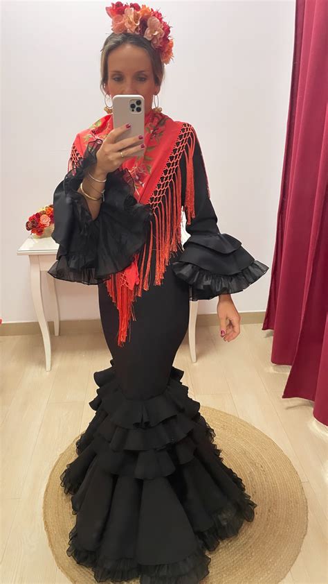 Un traje de flamenca negro, ya sea liso o con detalles sutiles, es sinónimo de elegancia y sofisticación. Es ideal para eventos nocturnos o para aquellas que buscan un look más sobrio y refinado. Un mantón de plumetti o aplicaciones de pedrería pueden elevar aún más este tipo de traje.
