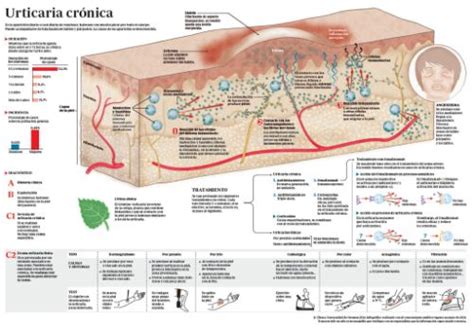 Infografía sobre fisiopatología de la urticaria crónica y el angioedema
