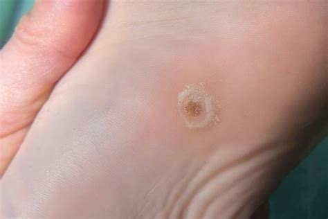 Al quitar capas de piel de la verruga se aprecia una pérdida de las líneas de la piel y unos puntos negros que corresponden a la vascularización del nervio.