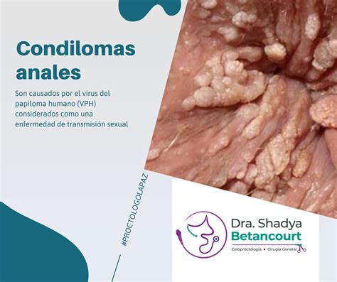 Los condilomas anales, también conocidos vulgarmente como verrugas anales, son lesiones mucocutáneas benignas que aparecen en la región perianal o dentro del canal anal. El VPH comprende más de 100 tipos diferentes, y aunque muchos no producen síntomas, pueden provocar la aparición de estas verrugas, y algunos de ellos están relacionados con un mayor riesgo de desarrollar lesiones precancerosas o cáncer anal.