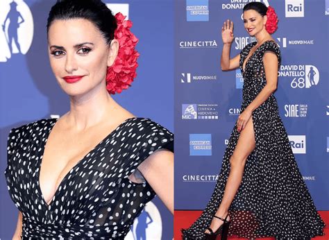 Penélope Cruz luciendo un elegante vestido de lunares.