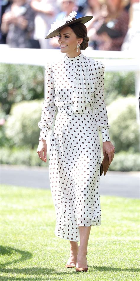Kate Middleton luciendo un elegante vestido de lunares.
