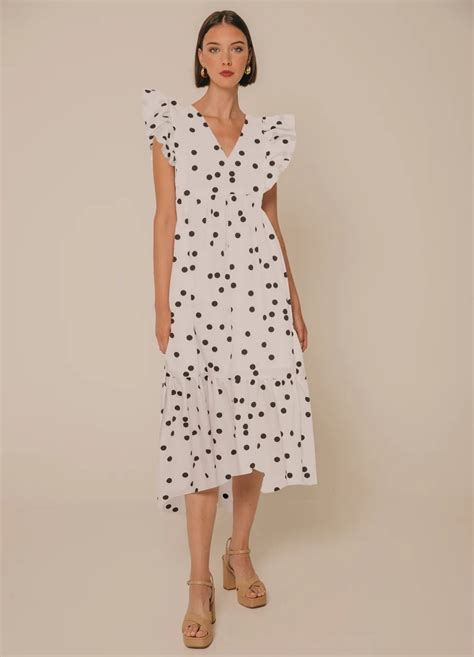 - Para un look casual: Combina tu vestido de lunares con zapatillas deportivas o sandalias planas y una chaqueta vaquera.