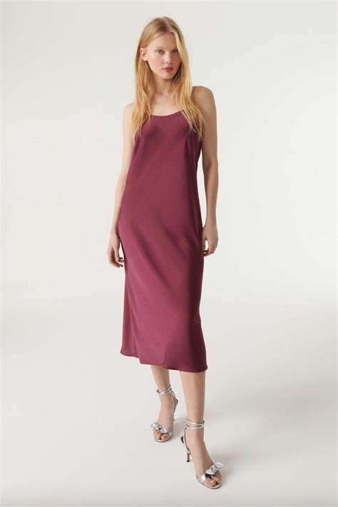 El vestido largo lencero en color granate, con detalle de encaje en el abdomen, fusiona el romanticismo con un diseño moderno. Su acabado satinado le da un brillo sutil y sofisticado, perfecto para ocasiones especiales.