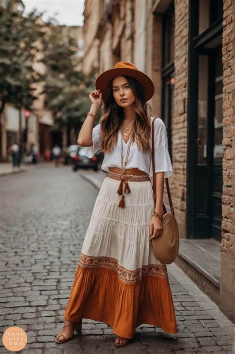 Un ejemplo de vestido largo de lunares estilo boho chic.