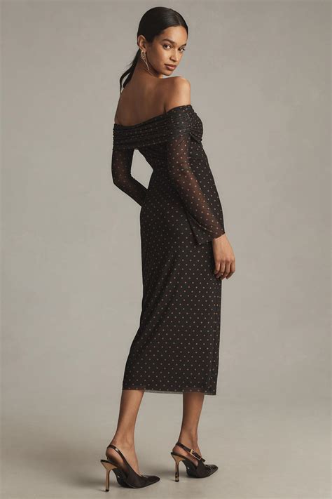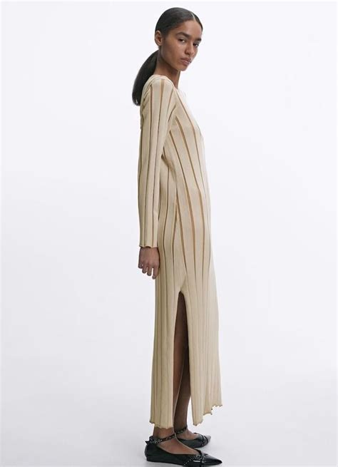 - Vestido con Hombros Descubiertos: Nos encanta este vestido largo con hombros descubiertos y escote de barco vuelto de Oysho (35,99 euros) en color negro que está arrasando. La marca propone combinarlo con unas sandalias cangrejeras.