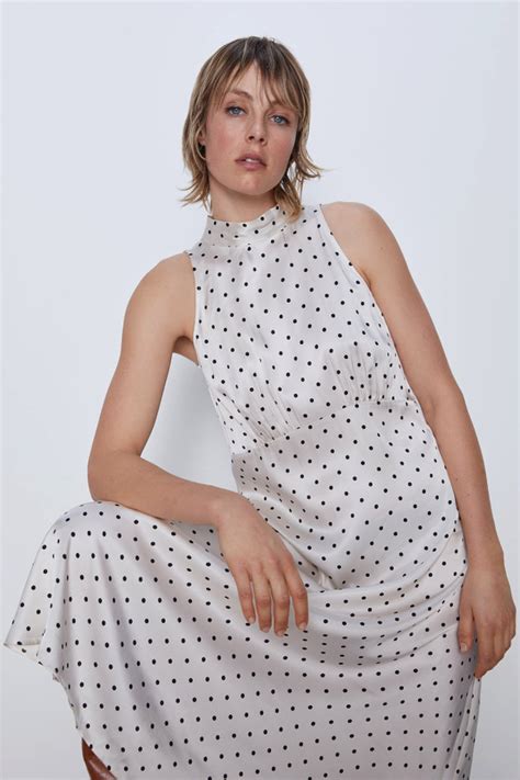 El satén sigue marcando tendencia esta temporada, y los lunares lo elevan aún más. Un vestido midi satinado de lunares en color negro de Zara, con cuello halter y espalda descubierta, es perfecto para una cena de entretiempo con sandalias y seguirá siendo un acierto en otoño con una blazer oversize y tacones.