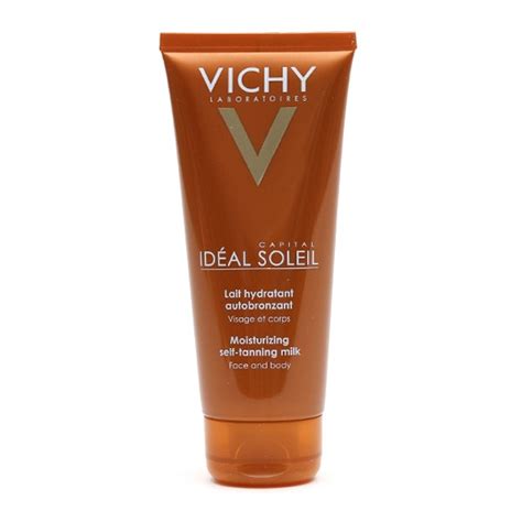 Vichy Ideal Soleil Lait Hydratant Autobronzant es un tratamiento bronceador en forma de leche que te ayuda a lograr un bronceado perfecto en muy corto tiempo sin la necesidad de exponerte a las dañinas radiaciones solares. Esta leche autobronceadora hidratante para rostro y cuerpo te aportará a tu piel un tono bronceado natural y un brillo dorado incluso en invierno.