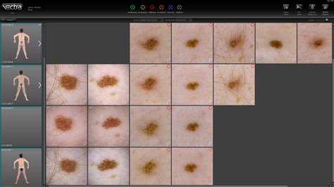 Ejemplo de seguimiento dermatoscópico digital de lunares a lo largo del tiempo.
